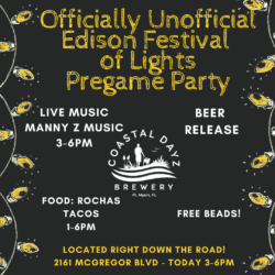 Officially Unofficial Edison Festival of Lights Pregame Party – Sat 21st 3pm